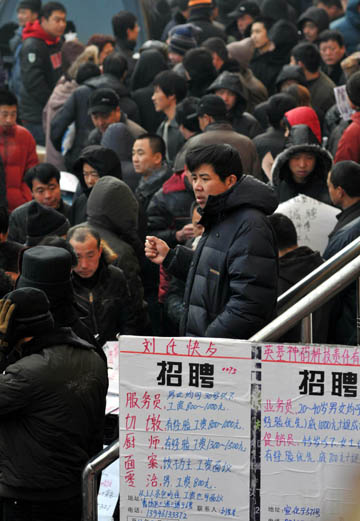 2月1日,求職者在哈爾濱市撫順街上的人才市場(chǎng)尋找工作崗位。 當(dāng)日是春節(jié)長(zhǎng)假后的首個(gè)工作日,不少求職者來(lái)到哈爾濱市道里區(qū)撫順街上的人才市場(chǎng),尋找工作崗位。