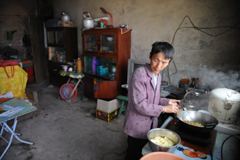 貴州省安順市普定縣城關(guān)鎮(zhèn)紅旗路居民羅正鳳稱,物價(jià)太高了,自己家收入有限,吃的菜也就是些土豆、酸菜等便宜的菜。記者 黃勇/攝 |