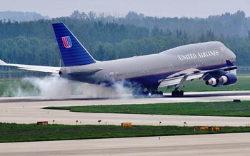 美國聯(lián)合航空公司N184UA號波音747-400客機著陸北京首都國際機場。資料圖片 |