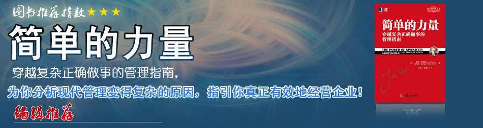 《簡單的力量》回歸常識,推崇簡單,從管理、領導、人員、市場等幾大方面給出“極簡主義”的建議。不過需要指出的是,這里的“簡單”可不是簡約、單調,而是清楚明白、突出要點、直達心理。 |