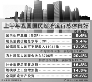 上半年“9.6%+5.4%”的組合,對于中國經濟而言,不僅意味著經濟增長繼續保持穩定,更意味著價格上漲將形成倒逼機制,加快結構調整和發展方式轉變。