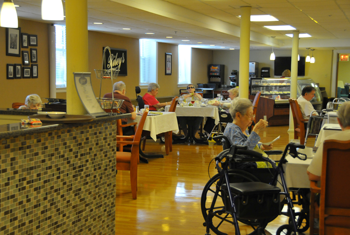 芝加哥市諾伍德養老院餐廳內老人在就餐。 記者 張保平/攝 |