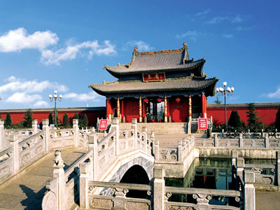 堯廟位于臨汾市秦蜀路南端,為山西省重點文物保護單位。堯廟原建于汾河西岸,晉元康中徙汾東,唐顯慶三年(685年)遷至今址,距今已1300余年,歷代均為國家級祭祀之所,并進行過多次修葺與擴建。堯廟現占地5.33公頃,主要有山門、王鳳樓、堯井亭、廣運殿、寢宮等古建筑群,以及距今已1600余年的漢代奇樹柏抱槐、柏抱楸、鳴鹿柏、夜笑柏等景觀。