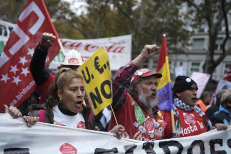 當地時間11月29日,西班牙多個城市的民眾聚集在首都馬德里參加“尊嚴游行”,抗議政府的財政緊縮政策。據悉,參加此次游行活動的人數超過25萬名。