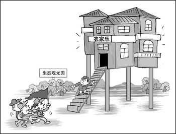 在重慶一戶農家樂采訪時,記者看到10多座木質“農家旅舍”環湖而建,建筑物離地挑空一兩米,使用鋼架作支撐。農家樂負責人說:“之所以要騰空建房,就是因為政策規定農業用地不能改變用途,但農旅配套又必須建接待設施,離地挑高建木房風險就較小。”