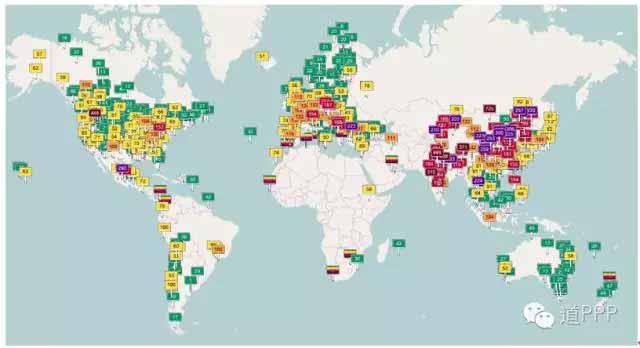 圖1 全球實時空氣質量跟蹤圖(2016年11月2日)
