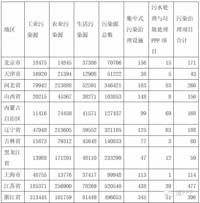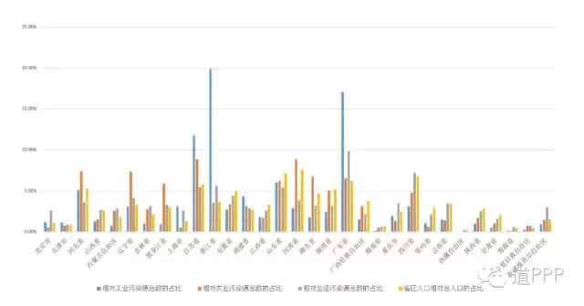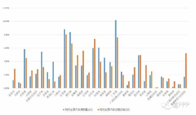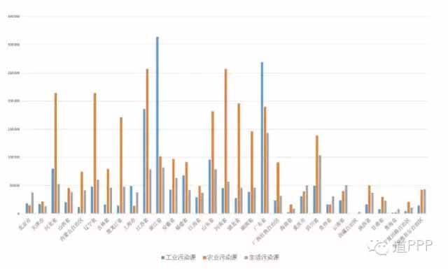 除了以上幾點外,輻射、噪音等嚴重程度也是評價環境問題的重點,但因為在我國這些問題尚不突出,且相應的項目也并未落成,故此處先不對這些問題做出延展。從中央層面來看,大氣、水、土壤的環境質量監測、污染源管理和排污權有償使用制度的推進也是十三五期間環境保護工作的重點,反應在市場方面,目前推出的PPP項目也是符合此中央工作方針的。本文的下一章便主要討論各省區污染源情況和PPP項目總量對于環境治理需求的匹配程度。