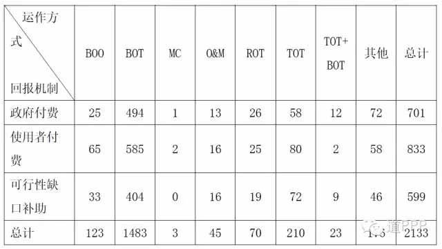 與其它PPP項目一樣,環保領域的PPP項目的回報機制主要有政府付費、使用者付費及可行性補助三種,從統計數據來看,三種付費方式幾乎平分秋色,數量分別是701、833、599。在項目運作方式方面,以BOT模式居多,具體運作方式和回報機制統計請詳見表4。