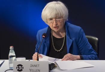 ??? 美國聯邦儲備委員會主席珍妮特·耶倫11月20日稱,在下任美聯儲主席宣誓就任后,她將辭去美聯儲理事一職。這是2017年10月15日耶倫在華盛頓出席會議的資料照片。新華社/法新 |