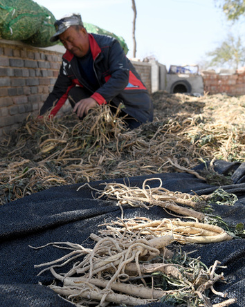 現在,右玉縣土壤肥力足,成了種藥材的好地方。村民張建平掰斷一截板藍根,指給記者看:“中間的芯是黃色的,上好的品相。收購公司的人說地里肥力足,才能種出好板藍根。”