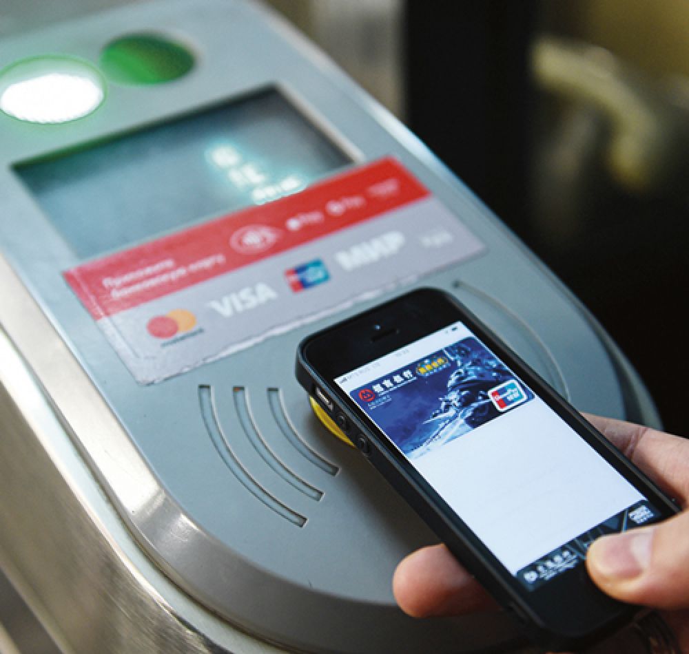 10 月11 日,俄羅斯首都莫斯科一地鐵站內,一名男子展示銀聯閃付進站功能葉甫蓋尼· 西尼岑攝/ 本刊