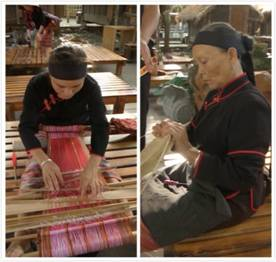 檳榔谷黎苗文化旅游區里的黎錦技藝及藤編活態展示