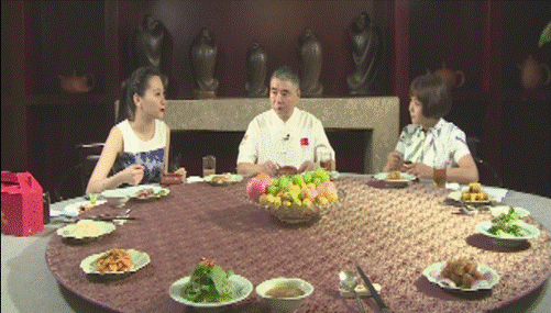 在觀眾的強烈要求下,李志順大師還現(xiàn)場教授了嘉賓一道快手時令菜——撣熗肉片。滑嫩的豬肉片用開水燙熟,過涼水后加入調(diào)好的醬汁,再配以當(dāng)季蔬菜,這道清爽美味的涼菜在夏季極受歡迎。