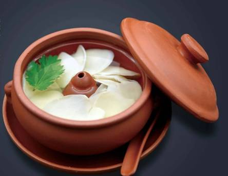 主持人張名和河南廣播電視臺主持人陶真與李志順,一邊吃一邊聊起蘊含在美食中的傳承和創(chuàng)新。第一道湯“酸辣烏魚蛋湯”,這道湯看似清如水,實際上是用雞、鴨和豬肘子熬制而成,再用雞胸肉茸吸附雜質(zhì),才能做到味道濃郁但又清澈如水,這種技法稱為“吊湯”。李志順還介紹,因為烏魚蛋遇到醋會發(fā)澀發(fā)硬,影響口感,因此,湯中酸味是經(jīng)過無數(shù)次調(diào)試,采用酸黃瓜汁調(diào)出酸味。看似平凡的湯,背后所蘊含的巧思和技法,讓觀眾們大開眼界。