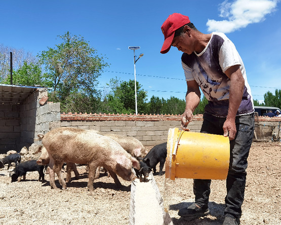 扎賚特旗脫貧戶包哈敦巴拉在喂豬,經過精準扶貧,他已成了村里的養豬大戶。2019年,通過勤奮養豬、護林,他的年收入超過15000元。記者 任軍川 攝