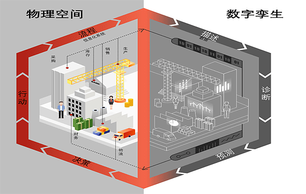 數(shù)字孿生是以特定目的為導(dǎo)向?qū)ξ锢硎澜绗F(xiàn)實(shí)對象的數(shù)字化表達(dá)。這一對象不僅包括產(chǎn)品、設(shè)備、建筑物等“實(shí)物”對象,也包括企業(yè)組織、城市等“實(shí)體”對象。通過對物理對象構(gòu)建數(shù)字孿生模型,實(shí)現(xiàn)物理對象和數(shù)字孿生模型的雙向映射。對于不同現(xiàn)實(shí)對象,其數(shù)字孿生模型構(gòu)建的側(cè)重點(diǎn)和用途不盡相同,要實(shí)現(xiàn)企業(yè)的數(shù)字化管理,需要構(gòu)建以整個(gè)企業(yè)組織體為對象的數(shù)字孿生,更強(qiáng)調(diào)對廣域數(shù)據(jù)的聚合融通,著力于通過模擬仿真來優(yōu)化全局決策和加強(qiáng)協(xié)同。可以說,企業(yè)級數(shù)字孿生是數(shù)字化管理應(yīng)用推廣的基礎(chǔ),是其智能化過程的載體。