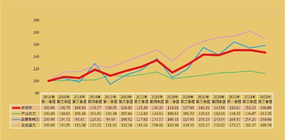 其中,產業實力指數同比增長2.6%。今年三季度,仙游持續推進國際原材料交易中心建設,推進電商平臺升級,9月份雖受到德爾塔毒株侵擾,產業規模指數略有降低,但產業效益指數明顯增長。