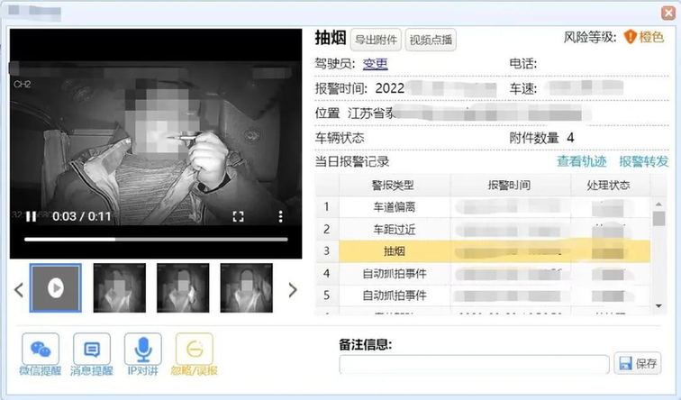 “3月2日,某公司車輛行駛在安徽無(wú)為縣境內(nèi)時(shí),駕駛員邊開(kāi)車邊抽煙”……在閔行區(qū)“危運(yùn)客運(yùn)”企業(yè)監(jiān)管平臺(tái)上,記者看到從車輛視頻監(jiān)控傳到后臺(tái)的一幕。面臨的后果是,該公司扣10分罰款500元,駕駛員扣20分并扣除考核工資60%。