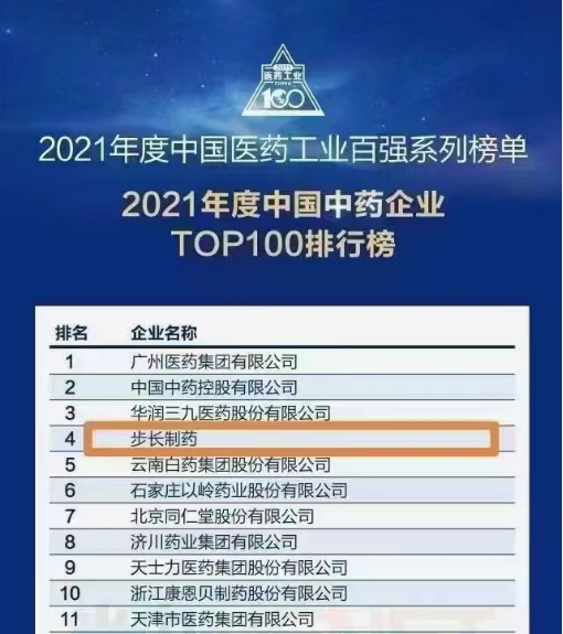 2022年7月12日-15日,“米思會(中國醫藥健康產業共生大會)在浙江湖州舉行,萬眾矚目的2021年中國醫藥工業百強系列榜單在會議上揭曉。步長制藥憑借扎實的研發生產實力及專業學術推廣能力榮登“中國中藥企業TOP100排行榜”第四,位列民營企業第一。