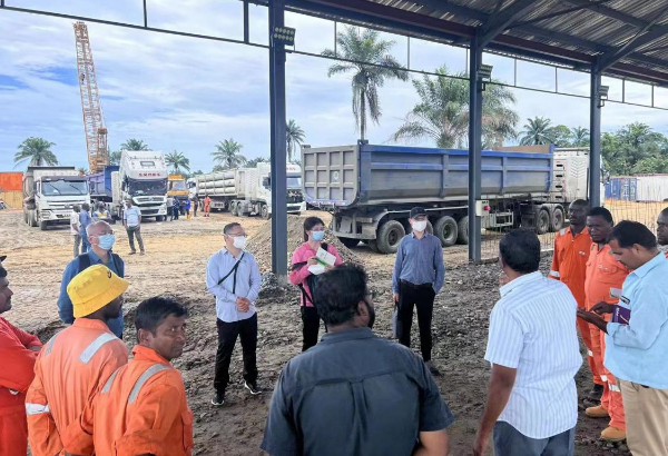 ??東風人員在尼日利亞CNG牽引車工地現場與客戶交流