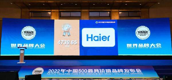 7月26日,由世界品牌實驗室(World Brand Lab)主辦的(第十九屆)“世界品牌大會”在北京舉行,會上發布了2022年《中國500最具價值品牌》分析報告。在這份基于財務數據、品牌強度和消費者行為分析的年度報告中,國家電網、中國工商銀行、海爾成為中國最具價值的前三大品牌。其中,海爾連續十九年登上這一榜單,蟬聯中國品牌前三,品牌價值高達4739.65億元。