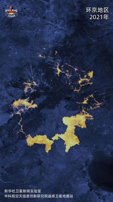 環(huán)京區(qū)域2021年夜晚的燈光圖。資料照片