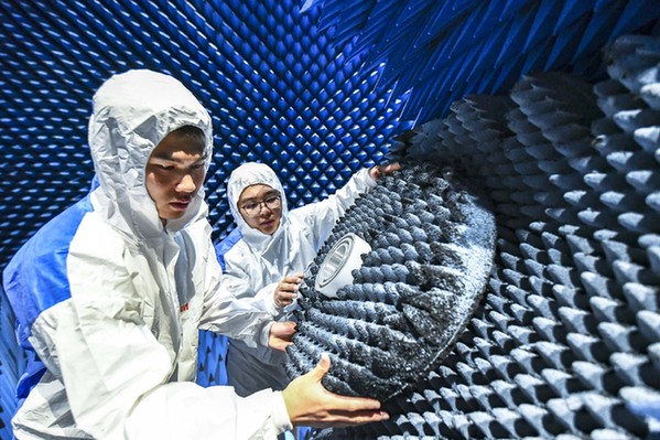 在寧波曙翔新材料股份有限公司實驗室內,研發人員對航天產品進行數據測試。(丁繼敏 攝)
