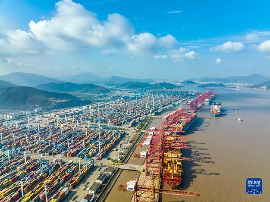 這是浙江寧波舟山港穿山港區(qū)(2021年12月24日攝,無人機(jī)照片)。新華社發(fā)(湯健凱 攝)