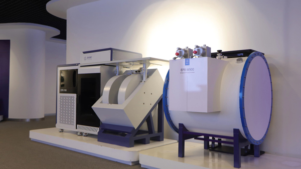 國儀量子展廳陳列的電子順磁共振波譜儀。(國儀量子公司供圖)