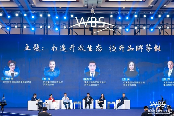 圖為2023世界品牌莫干山大會開幕式的“打造開放生態,提升品牌勢能”高端對話環節