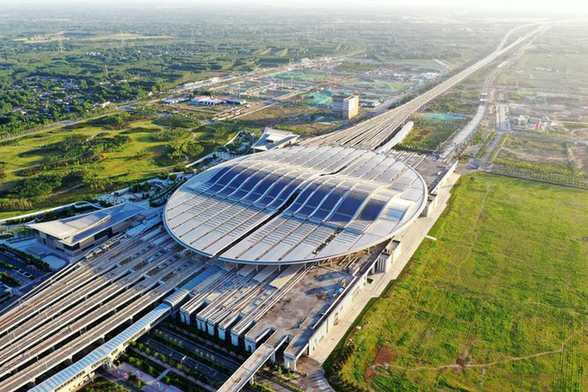 這是雄安站(6月2日攝,無人機(jī)照片)。雄安站位于雄安新區(qū)昝崗片區(qū),是雄安新區(qū)開工建設(shè)的第一個重大基礎(chǔ)設(shè)施項目,具有標(biāo)志性意義。新華社記者 朱旭東 攝