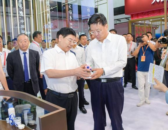 在與會領導嘉賓的共同見證下,山西省人大常委會副主任賀天才,山西省政府副省長劉旸,山西省政協副主席李正印,中國酒業協會理事長宋書玉,呂梁市委書記孫大軍,呂梁市委副書記、市長張廣勇,呂梁市人大常委會主任劉振國,呂梁市政協主席喬曉峰,汾酒黨委書記、董事長袁清茂,汾陽市委書記李正奎登臺,按動啟動裝置,“2023中國杏花村國際酒業博覽會”正式開幕。