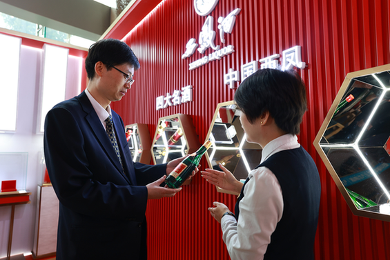 圖為陜西西鳳酒廠集團有限公司黨委書記、董事長張正在西鳳酒展廳參觀