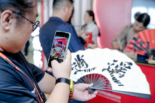 在五糧液精心布置的書法創(chuàng)作區(qū),青年書法家揮毫潑墨,邀請全球嘉賓在折扇上寫下“心中的和美”,“萬事勝意”“健康喜樂”“幸福平安”“逍遙”等寄語傳遞著對世界和家人的和美祝福。一位現(xiàn)場嘉賓表示:“和美是飽含美好寓意的詞語,這次活動將書法、折扇與‘和美’結(jié)合,向世界宣揚(yáng)了中華文化,非常有意義。”