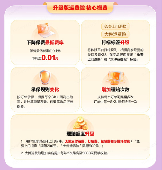 本次升級,再次擴大了支持“免費上門退換”的第三方商家的范圍,同時為了進一步幫助商家實現降本增效,針對經營極小件的商家和訂單支持保費折扣,賦能平臺賣家無憂運營,迎接即將到來的京東618。
