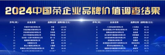 5月10日,“2024中國茶品牌建設論壇”在上海舉辦,中國茶葉流通協會、中國經濟信息社發布了中國茶品牌價值調查結果,中茶公司以128.09億再獲“2024中國茶品牌Top50”榜首,成為唯一品牌價值過百億企業。