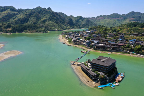 圖為重慶市酉陽縣酉水河鎮河灣村景色(無人機照片)。新華社記者 唐奕 攝