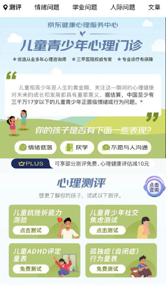京東健康心理服務中心的兒童與青少年心理門診不僅提供精神科專家問診和線上心理咨詢,還推出了多種評定量表,涵蓋兒童常見神經發育障礙的注意缺陷多動障礙(ADHD)量表和自閉癥譜系障礙量表,以及關注孩子社交和抗壓能力的測評。此外,門診還擁有豐富的科普資源,包括精神科醫生和心理咨詢師的原創科普文章和直播,幫助家長更全面了解孩子的心理問題。