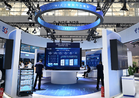 觀眾在2024世界智能產業博覽會中國電信展區參觀。 記者 趙子碩 攝