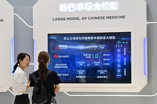 觀眾在2024世界智能產業博覽會上的天士力展區了解數智本草大模型。 記者 李然 攝