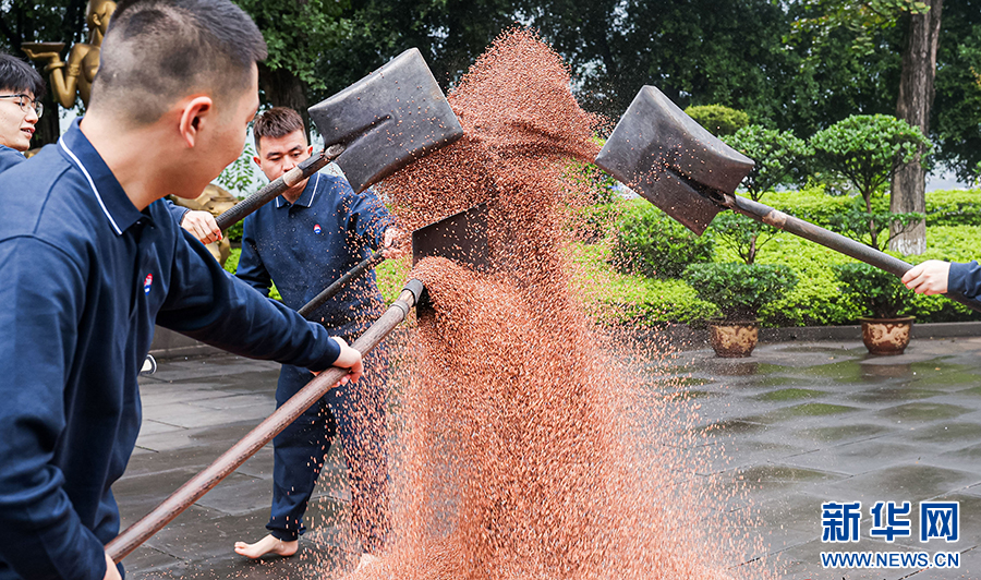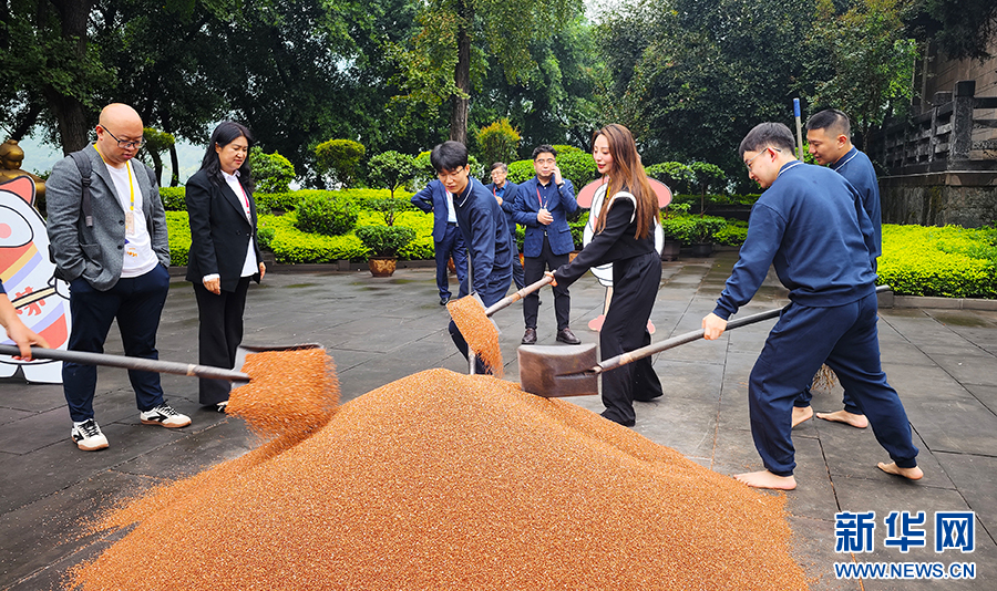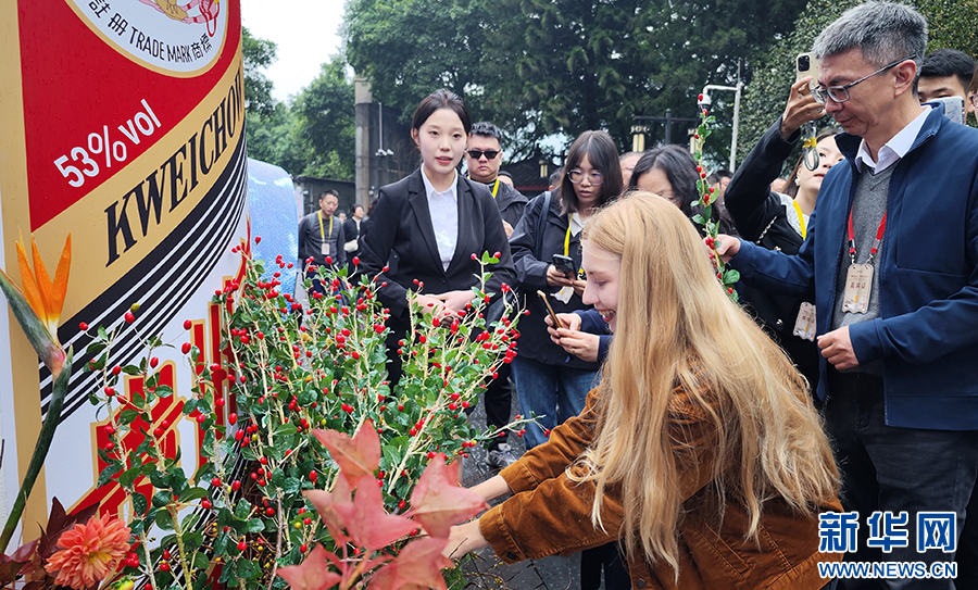 10月11日,參加茅臺酒節的嘉賓在茅臺中國酒文化城體驗“下沙”工藝。新華網 盧志佳 攝