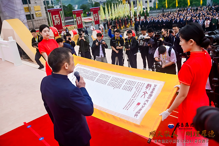 10月11日,茅臺人恭讀《甲辰年 2024年茅臺酒節敬文》。
