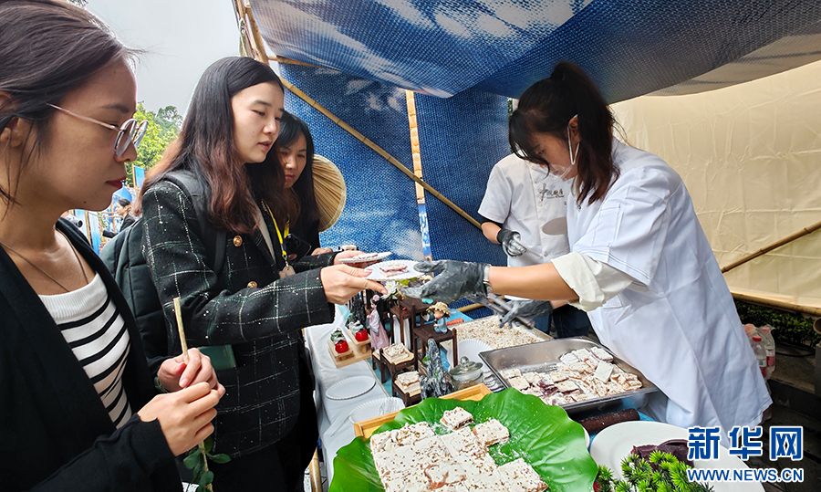 10月11日,嘉賓在茅臺酒節非遺市集品嘗美食。新華網 盧志佳 攝