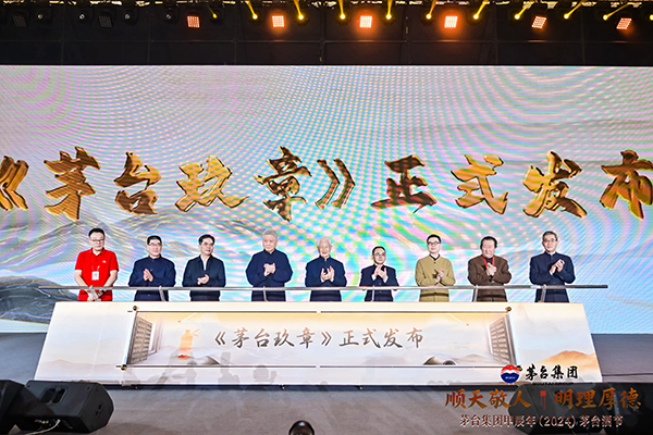 在此次茅臺酒節上,茅臺還正式發布了企業文化手冊——《茅臺玖章》。作為茅臺文化的集大成者,《茅臺玖章》從順天、敬人、明理、厚德四個層面進行延展,制定行為體系和行為細則,涵蓋了企業簡介、文化溯源、文化理念、行為準則、文化形象、茅臺產品、茅臺工藝、社會責任、致敬榜樣等九個篇章,全面而深入地展現了茅臺集團的企業文化體系。