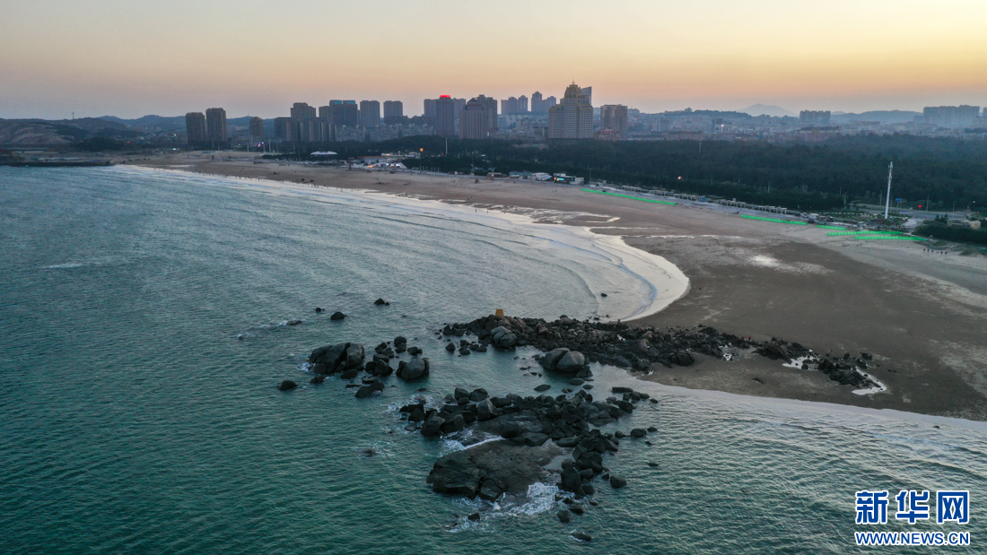 這是日落之后的龍王頭海洋公園海灘(10月14日攝,無人機照片)。新華網 肖和勇 攝