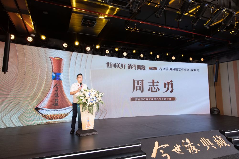 淮安市政府駐深圳辦事處副主任周志勇發(fā)表致辭。他說,江蘇淮安文化底蘊深厚,而今世緣酒業(yè)作為淮安的杰出代表,此次在深圳舉辦今世緣·典藏財富尊享會(深圳站),不僅體現(xiàn)了對深圳市場的重視,也彰顯了淮安與深圳之間日益密切的交流與合作。