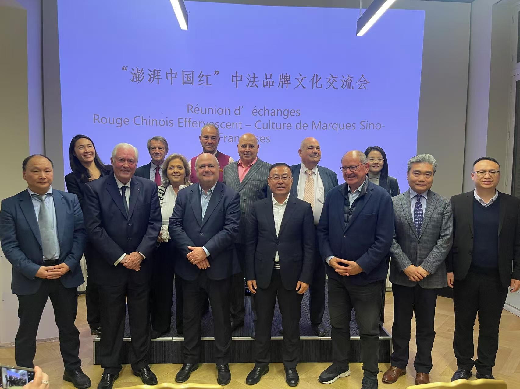 圖為“澎湃中國紅·中法品牌文化交流會”活動現場嘉賓合影。(劉洋攝)