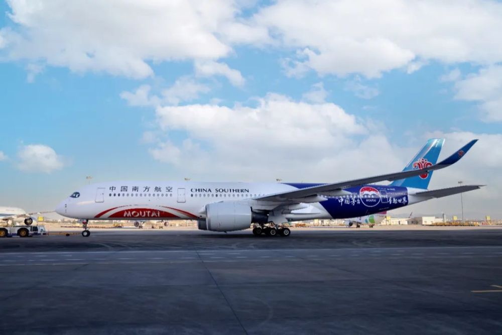 從“貴州茅臺號”創新升級而來的“中國茅臺號”,是南航首架A350商業彩繪飛機,也將成為連接中國與世界的一張靚麗“空中名片”,為茅臺開啟新的文化傳播窗口。