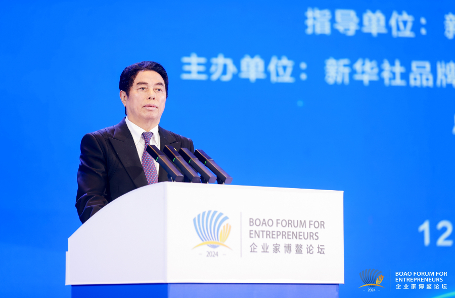 12月3日,2024企業家博鰲論壇主論壇舉行,圖為全國工商聯紡織服裝業商會理事長、波司登集團董事局主席兼總裁高德康發表主題演講。新華網發