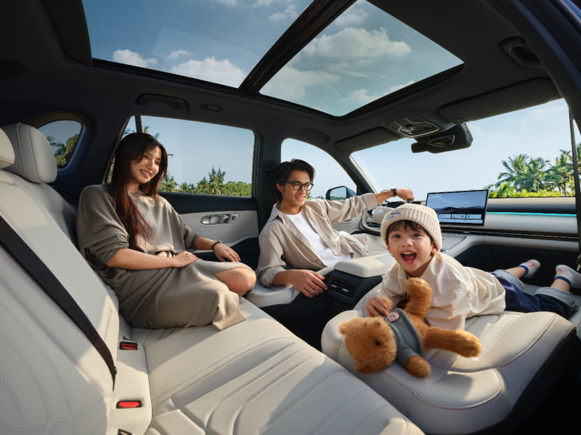 吉利銀河星艦7 的34處巧思儲物空間,分區收納,再多裝備也能各歸其位。后備箱采用創新的上下隔板設計,帶來 428L+100L下沉隱藏空間共528L超大可變后備箱空間,相當于“買房送飄窗”。后排頭部、肩部、膝部空間以及坐墊長度、高度、厚度均同級第一,告別新能源“小板凳”,讓每個成員都能坐得舒適。同時,后排放倒后容積達到2065L,秒變1.5米舒適大床房,也可放滑雪板等超大裝備。同級最大上下車通道和最低門檻,給每一位家庭成員帶來寬闊不拘束的乘坐體驗。